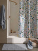 An artisanal-inspired design in textured pinstripes for a chic and soothing ambiance in your bathroom.